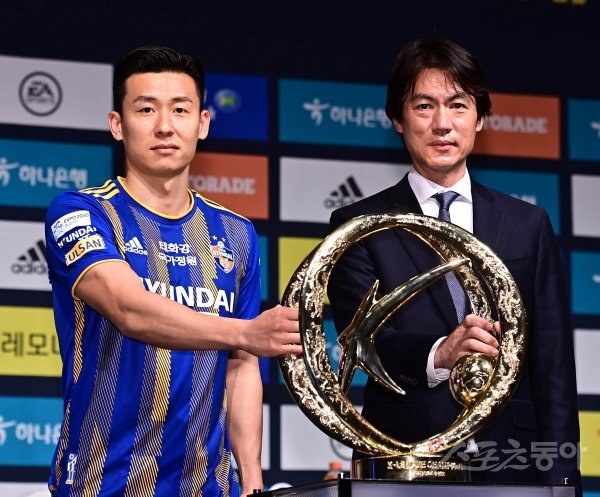 14일 서울 용산구 백범김구기념관에서 열린 ‘하나원큐 K리그 2022 개막 미디어데이’에서 울산 김태환 홍명보 감독이 포즈를 취하고 있다.