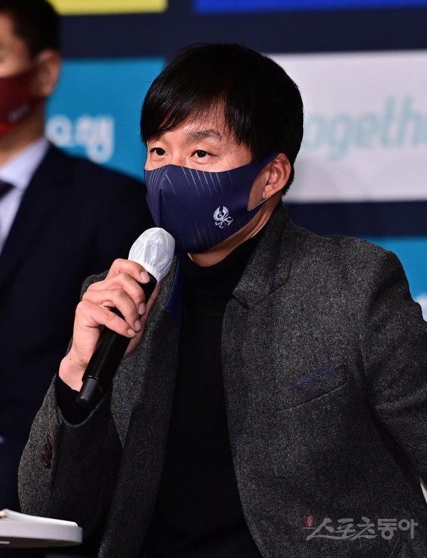 15일 서울 용산구 백범김구기념관에서 열린 ‘하나원큐 K리그2 2022 개막 미디어데이’에서 광주FC 이정효 감독이 출사표를 말하고 있다.