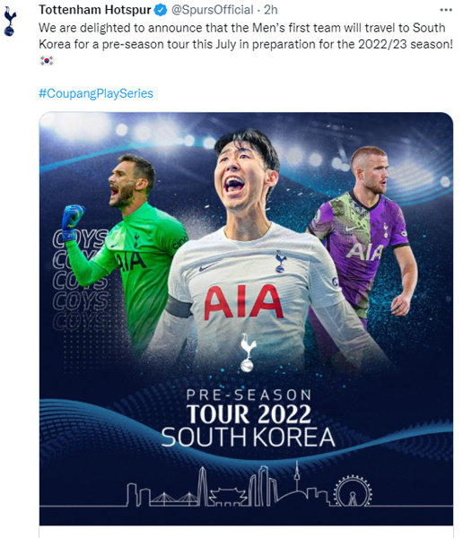 토트넘 구단은 16일(한국시간) 공식 채널을 통해 “2022-2023시즌을 준비하며 7월 한국을 방문하는 프리시즌 투어를 진행한다”고 밝혔다.