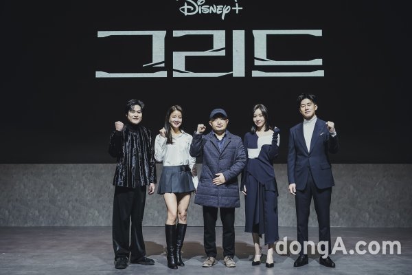 배우 김성균, 이시영, 김아중, 김무열, 리건 감독이 16일 오전 온라인을 통해 진행된 디즈니+ 오리지널 시리즈 ‘그리드’ 제작발표회에서 포토타임을 가지고 있다.