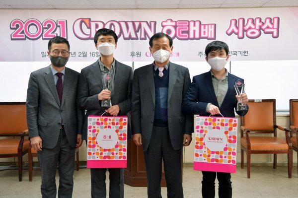16일 서울 성동구 한국기원에서 열린 2021 크라운해태배 시상식에는 김성중 해태제과 상임감사를 비롯해 양재호 한국기원 사무총장과 우승자 변상일 9단, 준우승자 한승주 9단이 참석해 영광의 순간을 함께 했다.