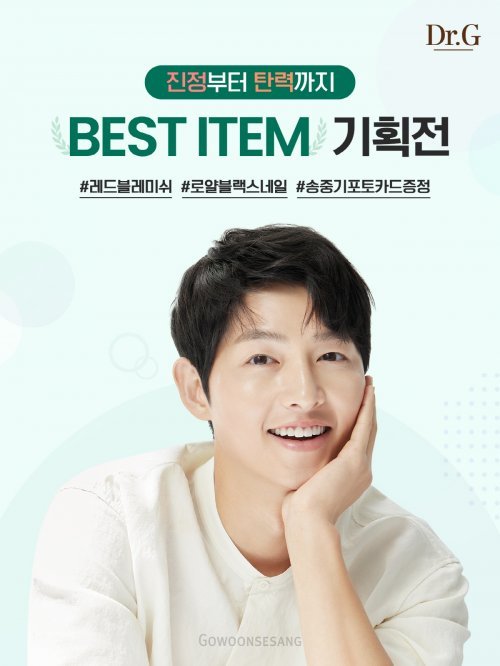 브랜드 모델인 배우 송중기가 추천하는 닥터지 아이템 ‘레드 블레미쉬’ 라인, ‘로얄 블랙 스네일’ 라인을 최대 40% 할인 판매하고, 송중기 친필 사인이 담긴 포토카드도 제공한다.