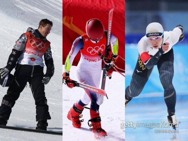 숀 화이트(왼쪽부터)·미케일라 시프린·고다이라 나오. 사진=게티이미지코리아