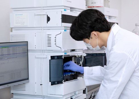 뉴메드 중앙연구소의 연구원이 기능성 소재를 연구하고 있다. 사진제공 | 뉴메드