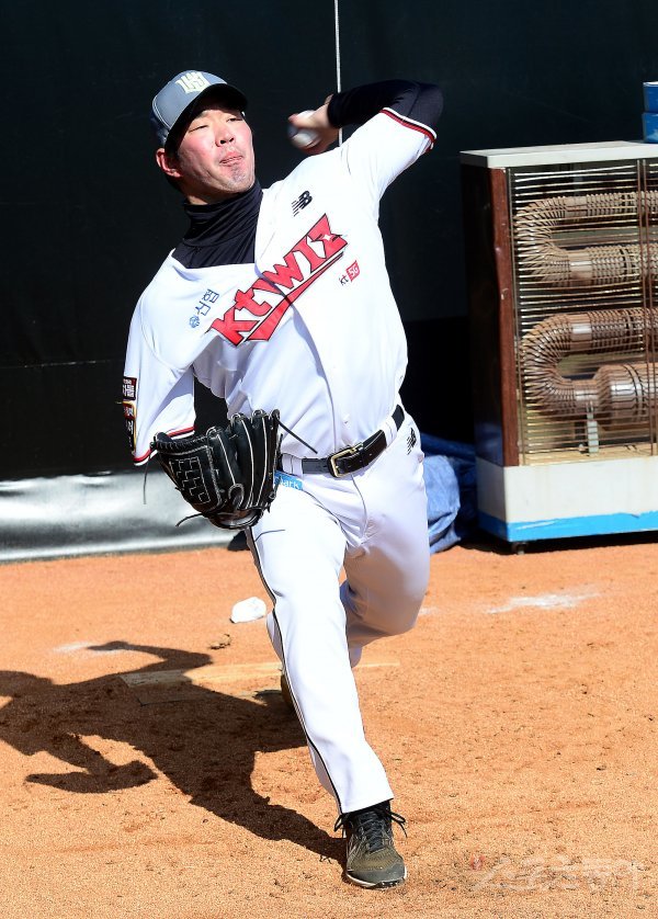 21일 부산 기장 현대차드림볼파크에서 kt가 2022시즌 스프링캠프 훈련을 펼쳤다. kt 김태오가 불펜에서 투구를 펼치고 있다.