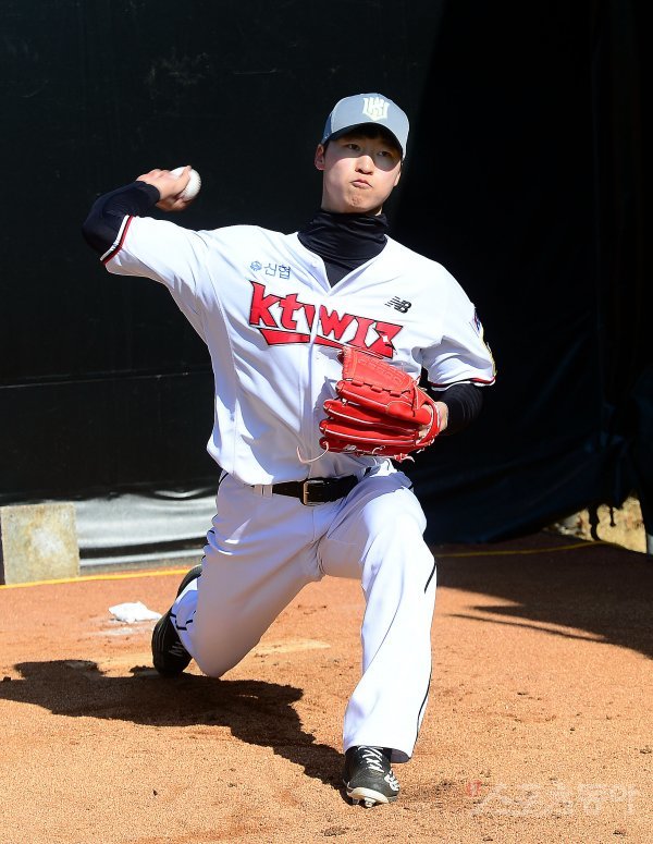 21일 부산 기장 현대차드림볼파크에서 kt가 2022시즌 스프링캠프 훈련을 펼쳤다. kt 엄상백이 불펜에서 투구를 펼치고 있다.