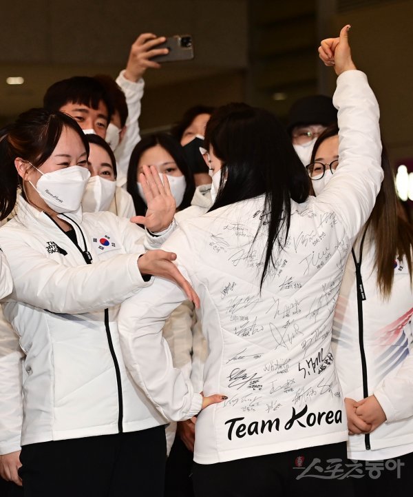 21일 인천국제공항 2터미널에서 열린 ‘2022 제24회 베이징동계올림픽대회’ 귀국 행사에서 여자 컬링 김경애가 포즈를 취하고 있다.