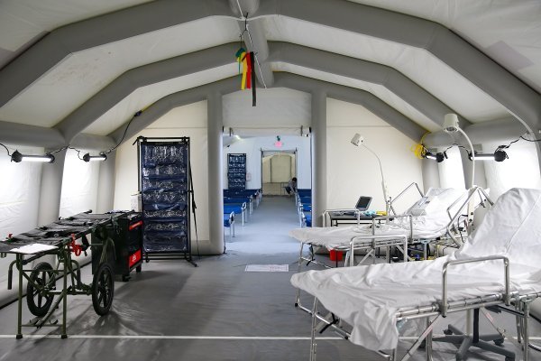 고려대의료원 주최 ‘코로나19 긴급모듈병원 트레이닝 세미나에서 시뮬레이이션 교육을 실시하는 모듈병원 내부 모습. 사진 | 고려대의료원