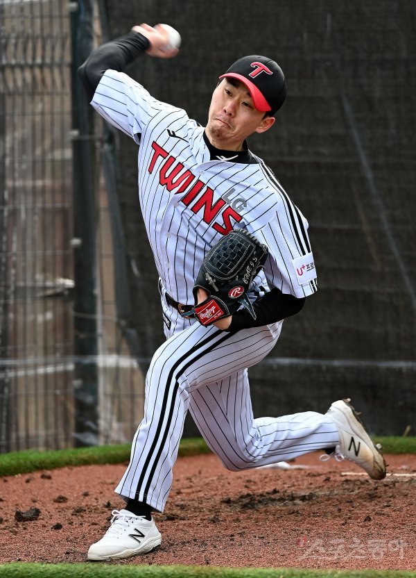 23일 경남 통영 산양스포츠파크에서 LG가 2022시즌 스프링캠프 훈련을 가졌다. LG 채지선이 불펜 투구를 펼치고 있다.