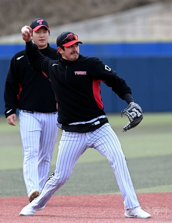 23일 경남 통영 산양스포츠파크에서 LG가 2022시즌 스프링캠프 훈련을 가졌다. LG 루이즈가 수비 훈련을 하고 있다.