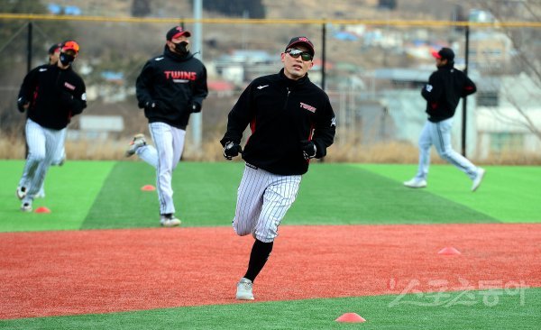 23일 경남 통영 산양스포츠파크에서 LG가 2022시즌 스프링캠프 훈련을 가졌다. LG 서건창이 그라운드를 달리며 몸을 풀고 있다.