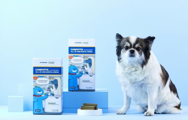 동국제약(대표이사 오흥주)은 비엠스마일과 함께 반려견의 구강건강과 영양 관리를 위한 ‘캐니비타 올인원 덴탈츄’를 출시한다.반려동물 브랜드 ‘페스룸’ 운영 비엠스마일 공동개발