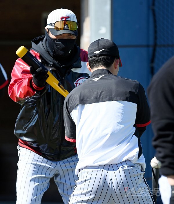 24일 경남 통영 산양스포츠파크에서 LG가 2022시즌 스프링캠프 훈련을 가졌다. LG 이호준 코치가 선수들의 타격을 지도하고 있다.