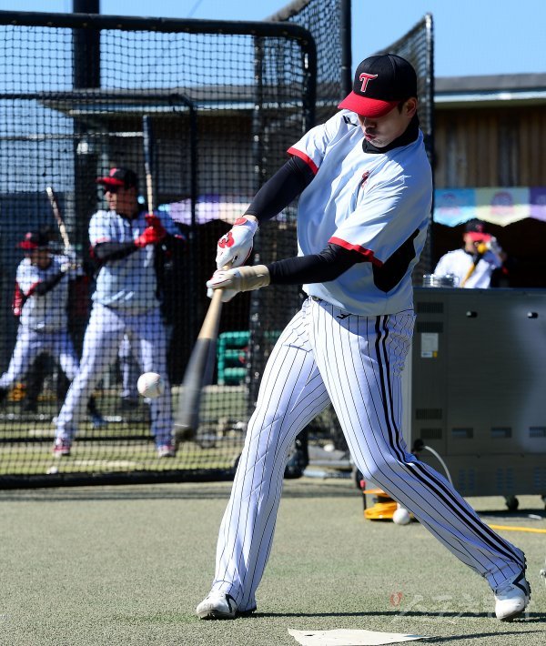 24일 경남 통영 산양스포츠파크에서 LG가 2022시즌 스프링캠프 훈련을 가졌다. LG 홍창기가 배팅 훈련을 하고 있다.