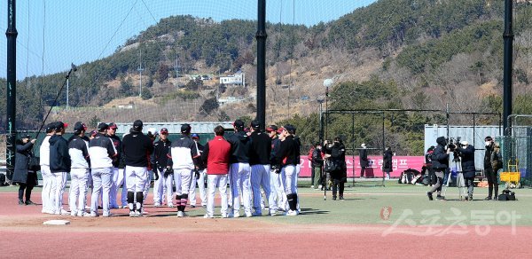 24일 경남 통영 산양스포츠파크에서 LG가 2022시즌 스프링캠프 훈련을 가졌다. LG 유플러스 영상팀에서 LG 선수들의 훈련모습을 다큐멘터리로 촬영하고 있다.