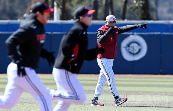 24일 경남 통영 산양스포츠파크에서 LG가 2022시즌 스프링캠프 훈련을 가졌다. LG 김민호 코치가 선수들의 훈련을 지도하고 있다.