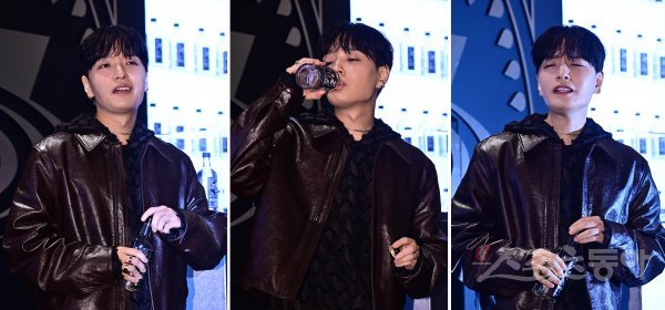 래퍼 쌈디가 25일 서울 영등포구 여의도동 더 현대 서울에서 열린 한 프리미엄 증류식 소주 브랜드 출시 기념 팝업 스토어 오픈 행사에서 포즈를 취하고 있다.