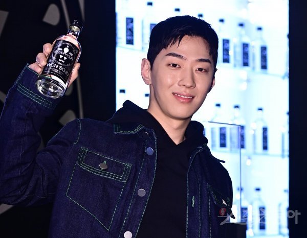 래퍼 그레이가 25일 서울 영등포구 여의도동 더 현대 서울에서 열린 한 프리미엄 증류식 소주 브랜드 출시 기념 팝업 스토어 오픈 행사에서 포즈를 취하고 있다.