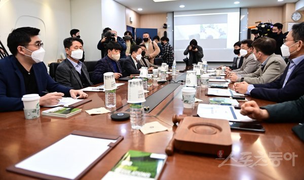 2일 서울 강남구 도곡동 야구회관에서 KBO 차기 신임 총재 선출을 위한 2022년 3차 이사회가 열렸다. 10개 구단 대표이사들이 이야기를 하고 있다.