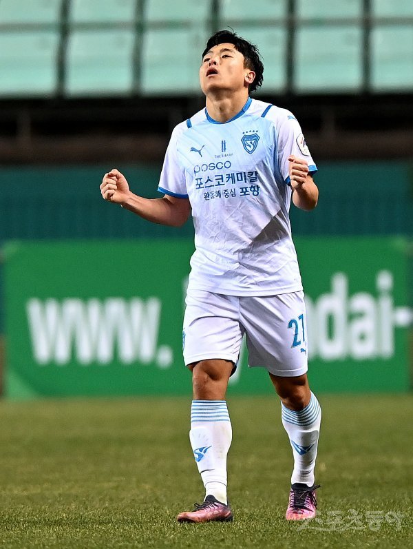 초반부터 포항이 경기를 주도했다. 승점 3을 향한 강렬한 열망을 초록 그라운드에서 고스란히 표출했다. 포항은 강한 전방 압박과 빠른 공수 전개로 홈 팀을 괴롭혔다. 전반에만 9차례 소나기 슛을 퍼부으며 기회를 노렸다.