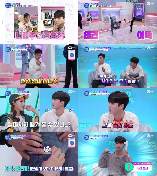 지난 2일 Mnet ‘TMI SHOW’ 4회에는 나태주와 위아이(WEi) 김요한이 네 번째 TMI 스타로 함께했다. 두 사람은 태권트롯, 태권돌 타이틀에 걸맞는 힘찬 발차기로 오프닝부터 이목을 사로잡았다.
