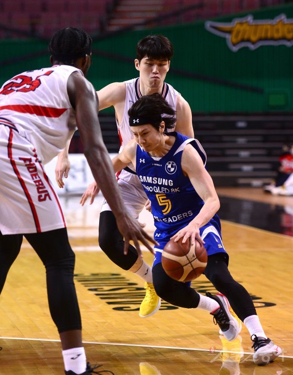 6일 잠실체육관에서 열린 ‘2021-2022 프로농구’ 삼성과 현대모비스 경기에서 삼성 김시래가 현대모미스의 수비를 뚫고 골밑을 공격하고 있다.