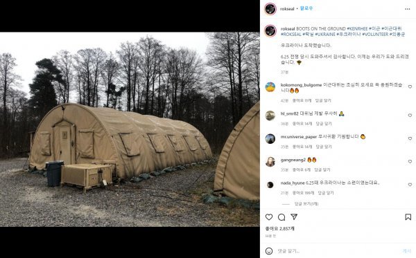 그는 또 ‘BOOTS ON THE GROUND(지상군)’라는 사진 설명을 달았다. 이와 함께 #KENRHEE #이근 #이근대위 #ROKSEAL #락실 #UKRAINE #우크라이나 #VOLUNTEER #의용군 이라는 해시태그를 덧붙였다. ‘ROKSEAL’은 그가 이끄는 군사 컨설팅 회사다.