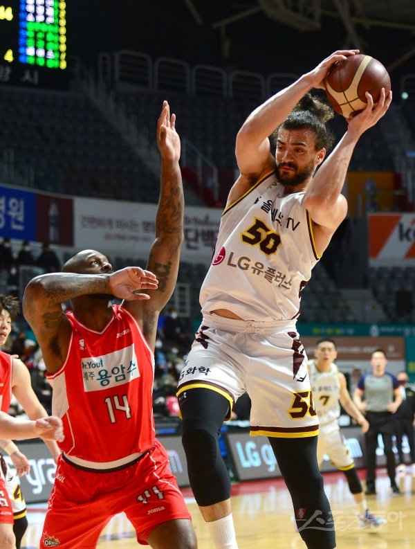 7일 고양체육관에서 열린 ‘2021-2022 프로농구’ 5위 오리온과 6위 LG 경기에서 LG 아셈 마레이가 리바운드 볼을 잡고 있다.