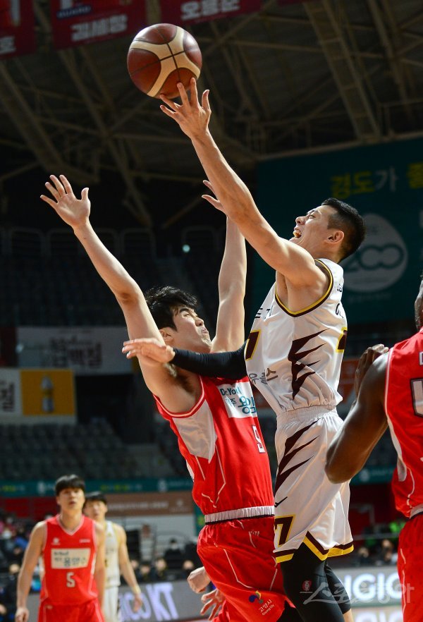 7일 고양체육관에서 열린 ‘2021-2022 프로농구’ 5위 오리온과 6위 LG 경기에서 LG 이관희가 오리온의 수비를 뚫고 골밑 슛을 하고 있다.