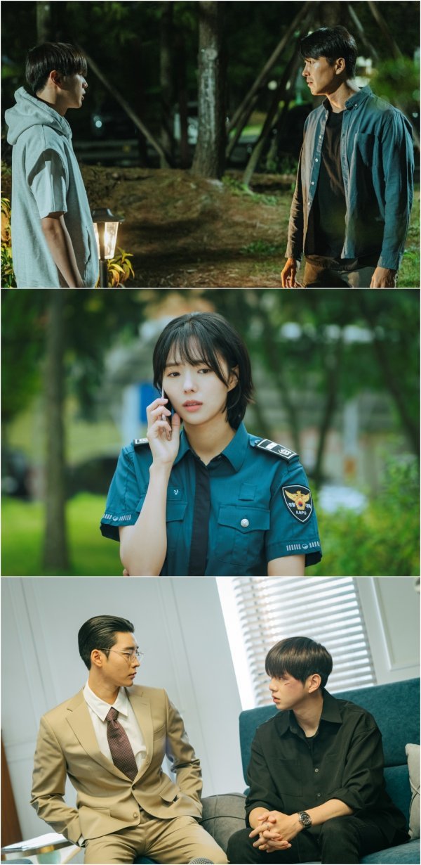 그런 가운데 공개된 사진 속, 강남기 형사(현우성 분)를 만난 위승현의 모습이 눈길을 끈다. 강 형사는 기한나(박유나 분)을 통해 경찰대학교에서 일어나는 일들을 전해 들으며 청춘들을 예의주시해 왔다. 그런 그가 위승현 앞에 나타난 이유는 무엇일까. 포커 페이스의 조한솔을 바라보는 상처 투성이 위승현의 눈빛도 심상치 않다. 여기에 걱정 어린 표정으로 누군가의 전화를 거는 고은강의 모습은 이들에게 닥친 위기를 더욱 궁금하게 한다.
