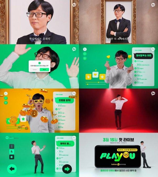 영상에서는 고풍스러운 액자 속에서 여유롭게 미소를 짓던 유재석이 갑자기 모바일 게임을 연상한는 밀폐된 공간에 갇히며 시선을 사로잡는다. 당황한 유재석의 모습 위로 “유재석을 플레이하시겠습니까?”라는 팝업창 안내메시지가 떠오른다. 이어 플레이어인 시청자들이 속속 라이브에 접속해 유재석과 자유롭게 소통하고 자유자재로 ‘지령’을 내리는 모습이 그려져 ‘플레이유’에서 펼쳐질 유재석과 시청자간 소통에 대한 기대를 높인다.