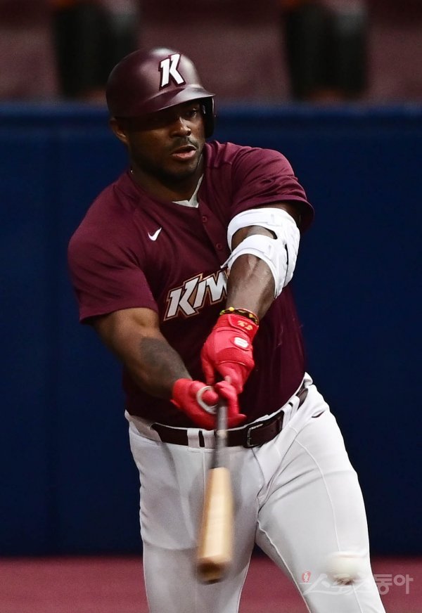 9일 서울 고척스카이돔에서 열린 키움 히어로즈의 자체 청백전에서 1회초 2사 2루 키움 푸이그가 타격을 하고 있다.