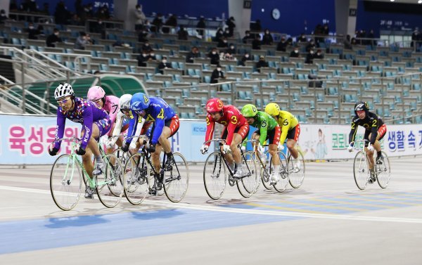 광명스피돔에서 결승선을 앞두고 마지막 전력질주를 하는 선수들.
