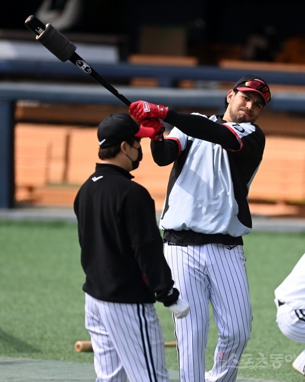 10일 서울 잠실야구장에서 LG 트윈스 훈련을 가졌다. 리오 루이스가 스윙을 하고 있다.