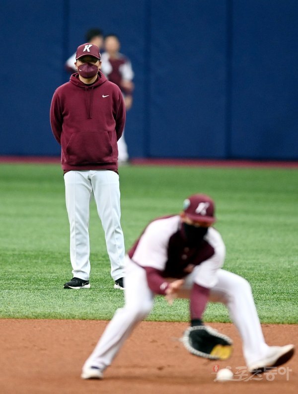 10일 서울 고척스카이돔에서 키움 히어로즈가 훈련을 가졌다. 키움 홍원기 감독이 훈련을 지켜보고 있다.