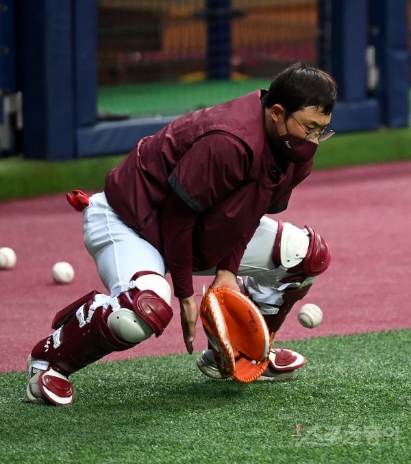 10일 서울 고척스카이돔에서 키움 히어로즈가 훈련을 가졌다. 키움 이지영이 포수 훈련을 펼치고 있다.