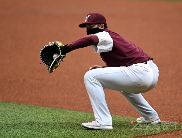 10일 서울 고척스카이돔에서 키움 히어로즈가 훈련을 가졌다. 키움 김웅빈이 수비 훈련을 펼치고 있다.