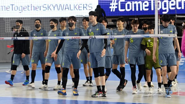 10일 천안 유관순체육관에서 열린 ‘2021~2022 도드람 V-리그’ 남자부 현대캐피탈과 KB손해보험 경기에서 세트스코어 1-3으로 패하며 6연패에 빠진 현대캐피탈 선수들이 아쉬워하고 있다.