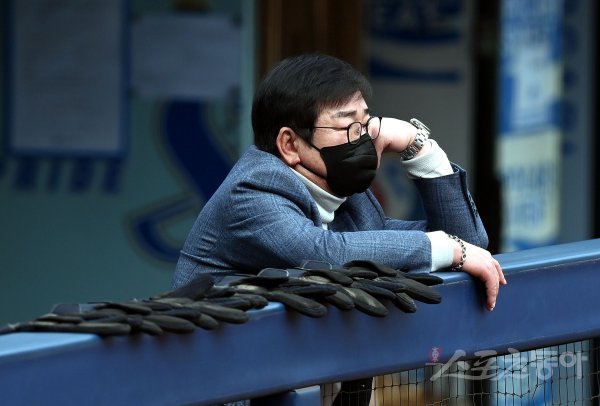12일 대구 삼성라이온즈파크에서 ‘2021 신한은행 SOL KBO리그’ 삼성 라이온즈와 한화 이글스의 시범경기가 열렸다. 경기에 앞서 류중일 야구국가대표팀 감독이 야구장을 찾아 훈련을 지켜보고 있다. 대구 | 김민성 기자 marineboy@donga.com