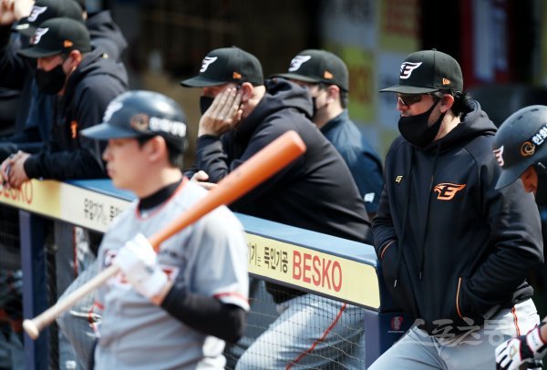 12일 대구 삼성라이온즈파크에서 ‘2022 KBO리그’ 삼성 라이온즈와 한화 이글스의 시범경기가 열렸다. 한화 수베로 감독이 경기를 지켜보고 있다.