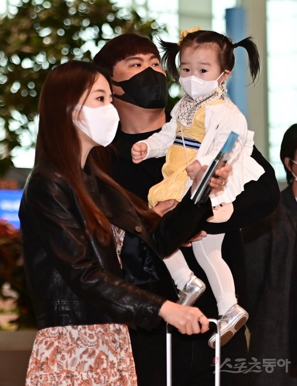 토론토 블루제이스 류현진이 아내 배지현, 딸과 함께 14일 인천국제공항에서 미국프로야구 메이저리그(MLB) 2022시즌 준비를 위해 출국하고 있다.