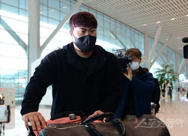 토론토 블루제이스 류현진이 14일 인천국제공항에서 미국프로야구 메이저리그(MLB) 2022시즌 준비를 위해 출국하고 있다.