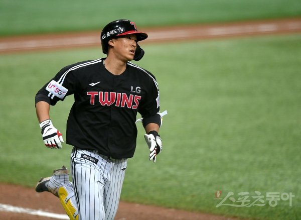 14일 서울 고척스카이돔에서 ‘2022 신한은행 MY CAR KBO리그’ LG트윈스와 키움 히어로즈의 시범경기가 열렸다. 8회초 무사 LG 송찬의가 좌월 솔로 홈런을 날린 후 그라운드를 돌고 있다.