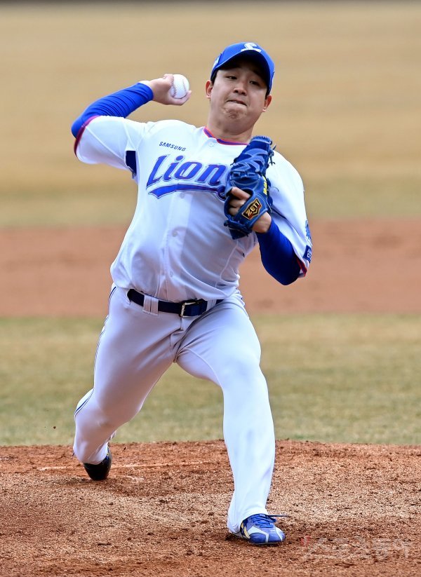 14일 대구 삼성라이온즈파크에서 ‘2022 KBO리그’ 삼성 라이온즈와 KIA 타이거즈의 시범경기가 열렸다. 삼성 선발투수 양창섭이 힘차게 볼을 던지고 있다.