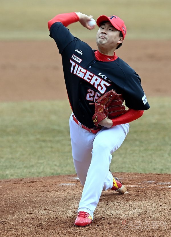 14일 대구 삼성라이온즈파크에서 ‘2022 KBO리그’ 삼성 라이온즈와 KIA 타이거즈의 시범경기가 열렸다. KIA 선발투수 한승혁이 힘차게 볼을 던지고 있다.
