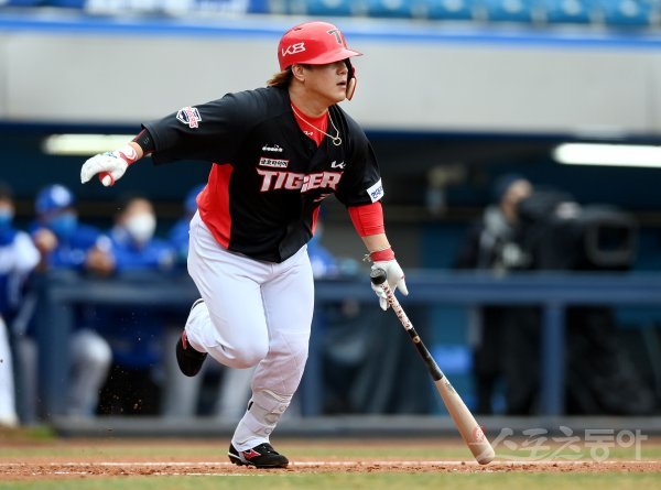 14일 대구 삼성라이온즈파크에서 ‘2022 KBO리그’ 삼성 라이온즈와 KIA 타이거즈의 시범경기가 열렸다. 3회초 2사 1, 2루에서 KIA 김선빈이 1타점 적시타를 날리고 있다.