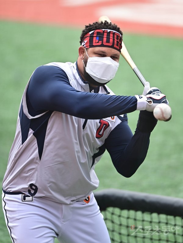 15일 경기도 수원KT위즈파크에서 열린 ‘2022 KBO 리그’ KT 위즈와 두산 베어스의 시범경기에 앞서 두산 페르난데스가 배팅 훈련을 하고 있다.
