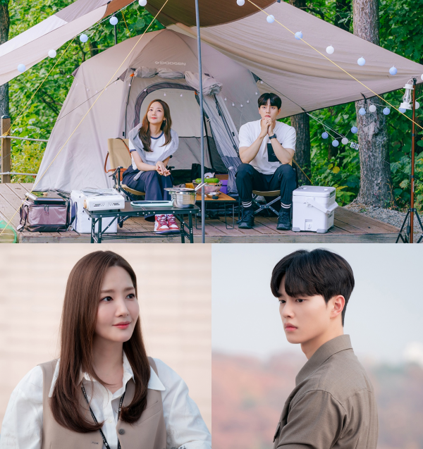 무엇보다 MZ 세대 시청자들이 방송 직후 각종 SNS와 온라인 커뮤니티를 통해 열띤 반응을 드러내고 있는데, 그 포인트는 바로 현실적 ‘사내연애’ 스토리다. 지난 방송에선 진하경(박민영)♥이시우(송강)와 한기준(윤박)♥채유진(유라)의 애정사가 정체 전선에 돌입 궁금증을 키웠다. 하경과 시우는 비혼주의에 이어 장거리 연애라는 위기를 맞닥트렸고, 기준과 유진은 갈등이 극으로 치달으며 급기야 별거에 들어섰다. 그 어느 때보다 시청자들의 주목을 받고 있는 가운데, 이들의 향후 연애 날씨에 대해 제작진이 살짝 힌트를 전해왔다.