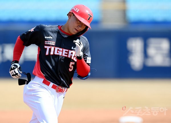 15일 대구 삼성라이온즈파크에서 ‘2022 KBO리그’ 삼성 라이온즈와 KIA 타이거즈의 시범경기가 열렸다. 3회초 무사에서 KIA 김도영이 솔로 홈런을 쏘아 올린 뒤 그라운드를 돌고 있다.