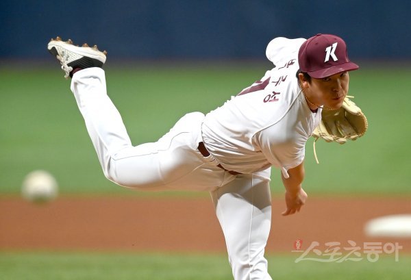 15일 서울 고척스카이돔에서 ‘2022 신한은행 MY CAR KBO리그’ LG 트윈스와 키움 히어로즈의 시범경기가 열렸다. 교체 등판한 키움 박주성이 역투하고 있다 .